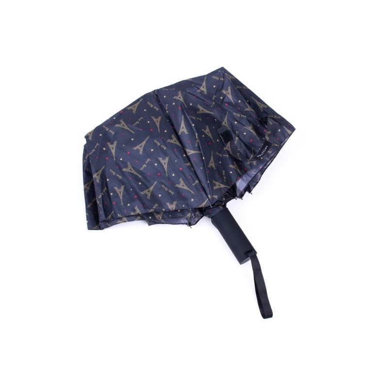 Nollia Windproof Automatic Travel Umbrella, Compact Portable with Reinforced Ribs for Sun & Rain-Black Paris Eiffel Tower