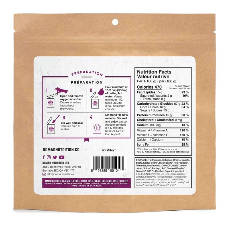 NOMAD NUTRITION - Ukrainian Borscht - Plant Based, Protein Packed, Nutritious dehydrated Meal for Camping, Travel, Adventure on The go (4 oz)