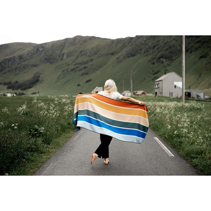 Nomadix オリジナルタオル - ビーチ、プール、旅行、キャンプ、ヨガに最適 - リサイクル素材使用 - 超吸収性 - 砂に強い - ストライプ レトロ - 72.5x30