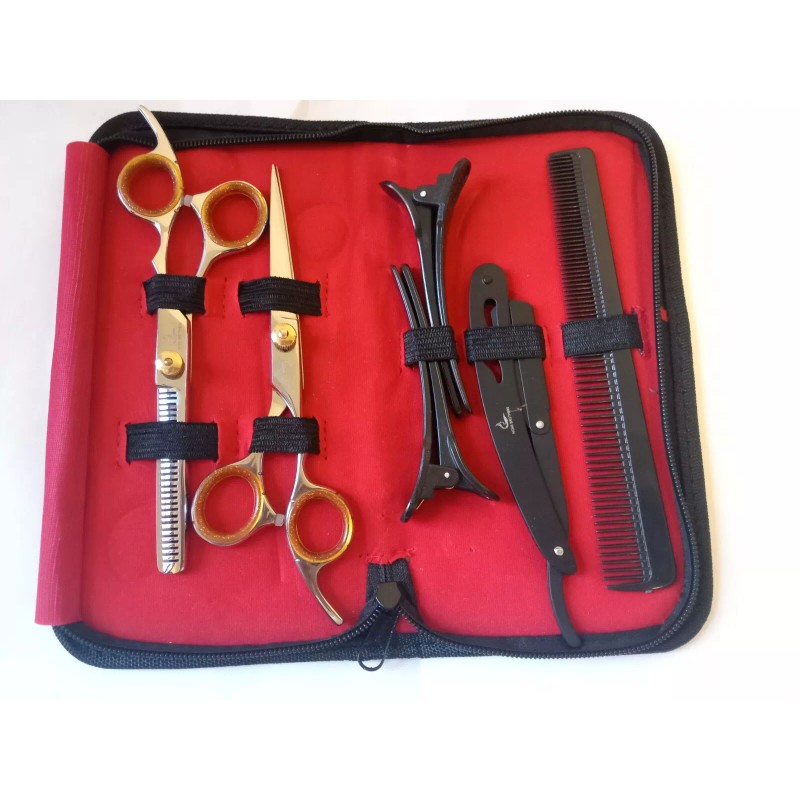 Achieve salon-quality results at home or in your barbershop with this 5 PCS Professional Hair Cutting Shears Set, complete with essential tools for precise styling and trimming.
