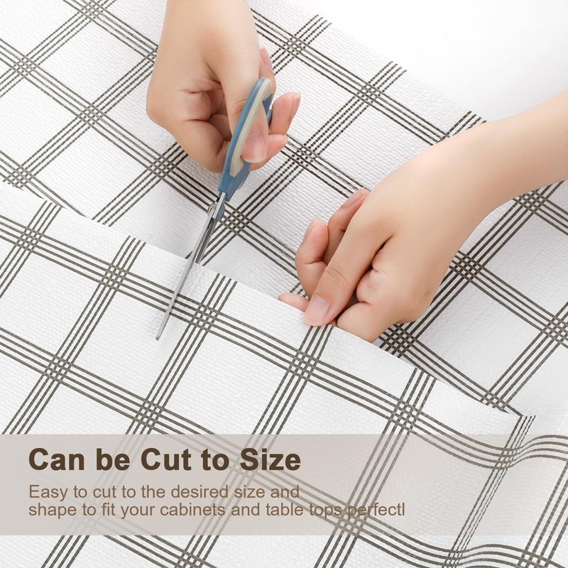 - 【EASY TO CUT】Shelf liner non slip is easy to cut and suitable for all kinds of spaces Whether it's the kitchen, bathroom, study or bedroom, this cabinet shelf liner is a perfect match. Its design makes it suitable for all occasions and helps you keep your space neat and organized.