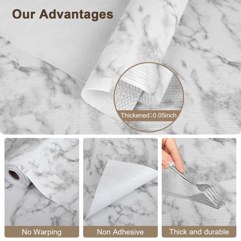 Non-Adhesive Drawer and Shelf Liner 17.5IN x 30FT,Non Slip Cabinet and Cupboard Liner, Kitchen Cabinet Liners for Shelves, Waterproof Drawer Shelf Liners for Cabinets/Bathroom Cupboard, Marble Pattern