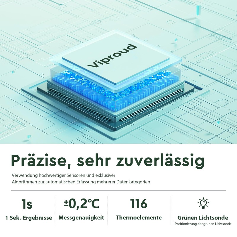 - Quick and accurate results: with the Viproud thermometer you get the result after 1 second. The Viproud non-contact infrared thermometer features an advanced infrared detector that has passed multiple performance standards and tests. The measurement results can be accurate to 0.1°C/°F, the accuracy is ±0.2℃/±0.4℉.