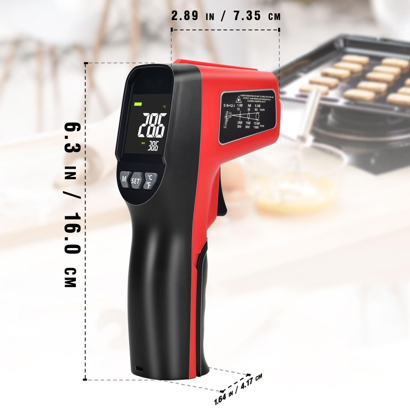 - [ Wide Range of Applications ] : Infrared technology makes this thermometer convenient to measure the surface temperature of various objects, especially the temperature above boiling and below freezing; it can be used in cooking and grilling, car maintenance, completing HVAC projects, home Use it for repairs and many other tasks.
