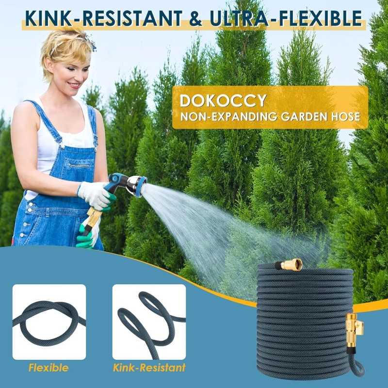 - New Generation Non-Expandable Hose: DOKOCCY new non-expandable garden hose features the latest high-density woven outer layer and a nano-composite inner tube. This non-expanding hose is more durable, flexible, lightweight, and kink-resistant, offering better operability and user experience