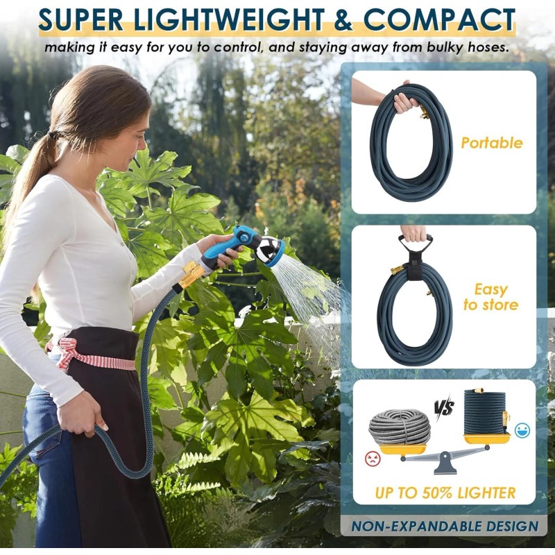 - Super Lightweight and Easy to Carry: The DOKOCCY non-expandable hose is super lightweight, over 50% lighter than traditional hoses, making watering easier. It comes with a storage strap for easy storage and portability