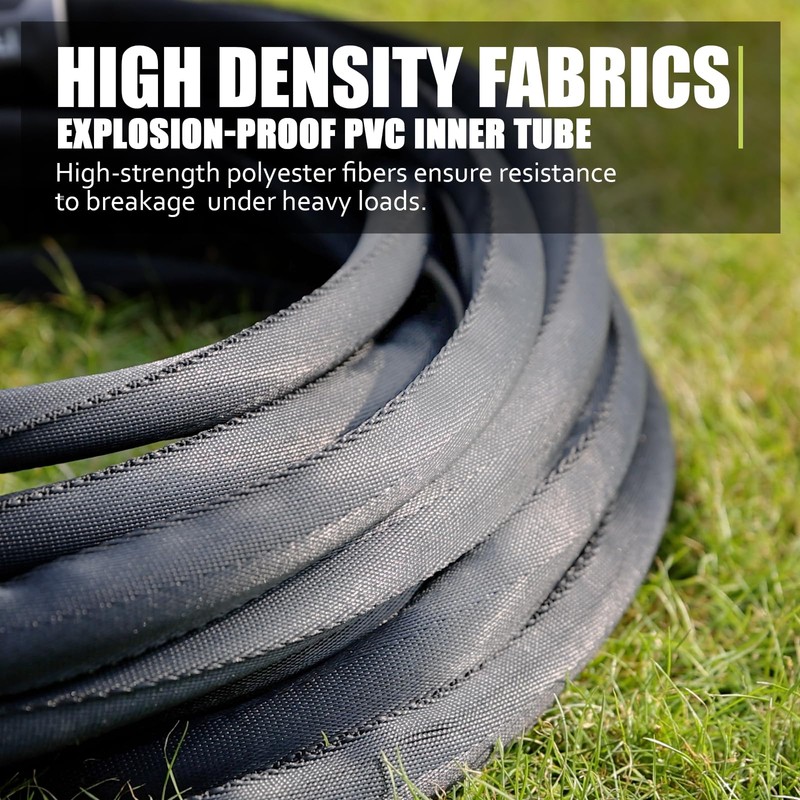 • Upgraded Material: The garden hose is made from high-density thickened fabric, providing protection to the inner tube against punctures and wear. The thickened PVC inner tube enhances the durability of the water hose.