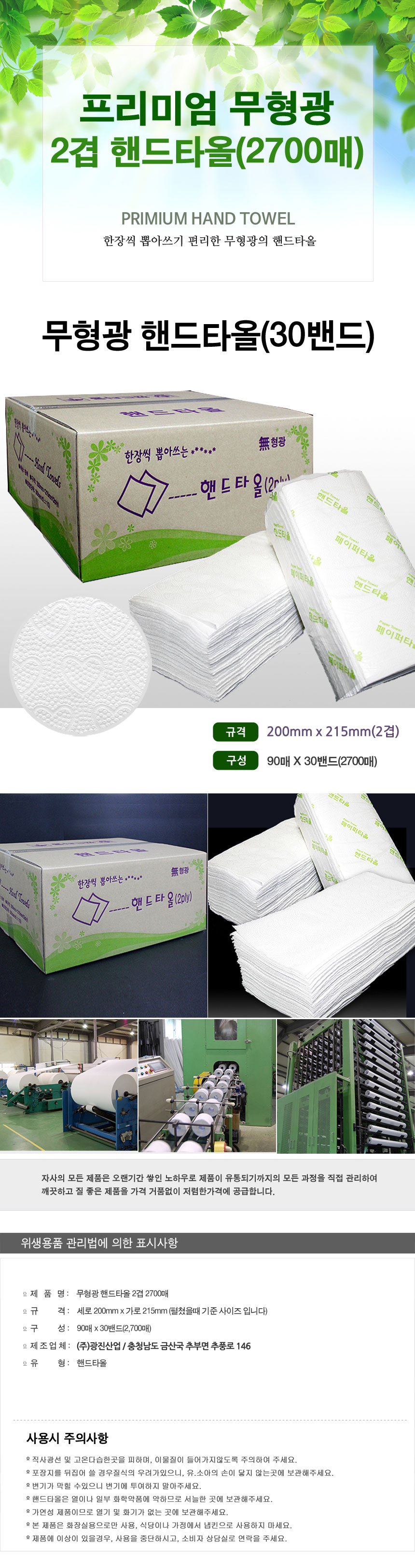 Non-fluorescent hand towel 2-ply 30 bands (2,700 sheets) / 무형광 핸드타올 2겹 30밴드(2700매)