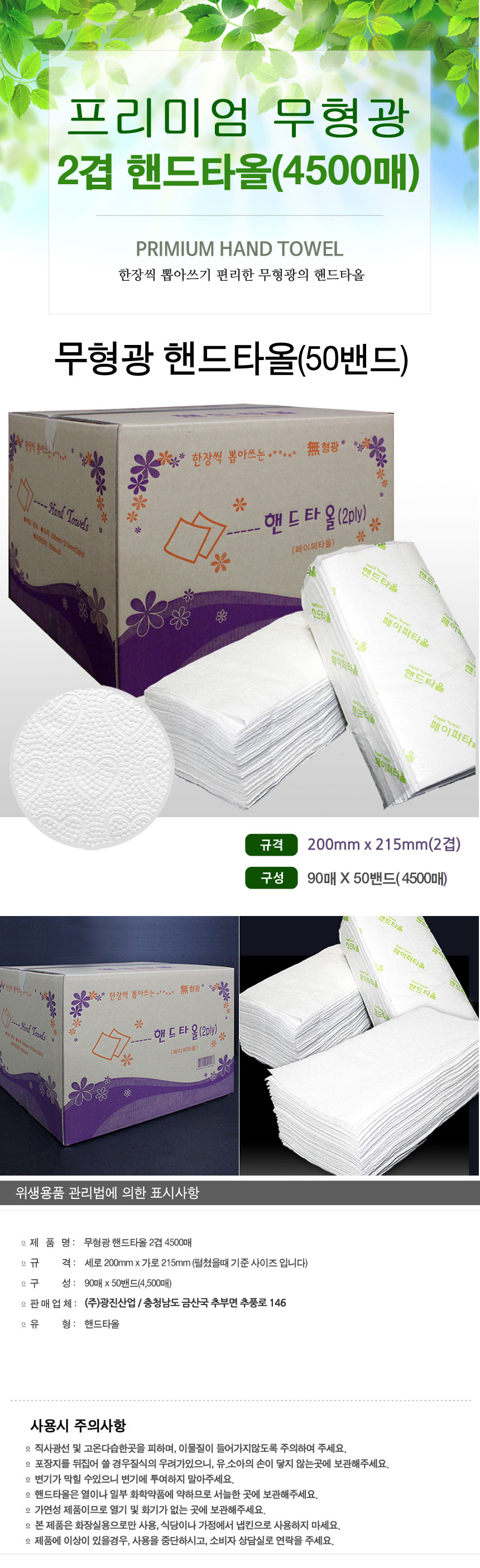 Non-fluorescent hand towel 2-ply 50 bands (4500 sheets) / 무형광 핸드타올 2겹 50밴드(4500매)