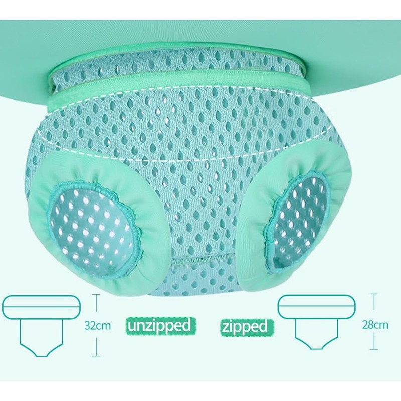 - The size is one size fits all, and the age of use is 4-18 months. However, the bottom crotch depth can be adjusted in two levels to adjust the depth and correspondingly adjust the child's center of gravity to prevent forward leaning. There is a backrest and headrest for easy rest. The circular shape with waterproof fabric cover and the flower pattern with non waterproof fabric cover. The depth of water in the swimming pool corresponds to the baby's armpit, with a maximum depth of 60 centimeters.