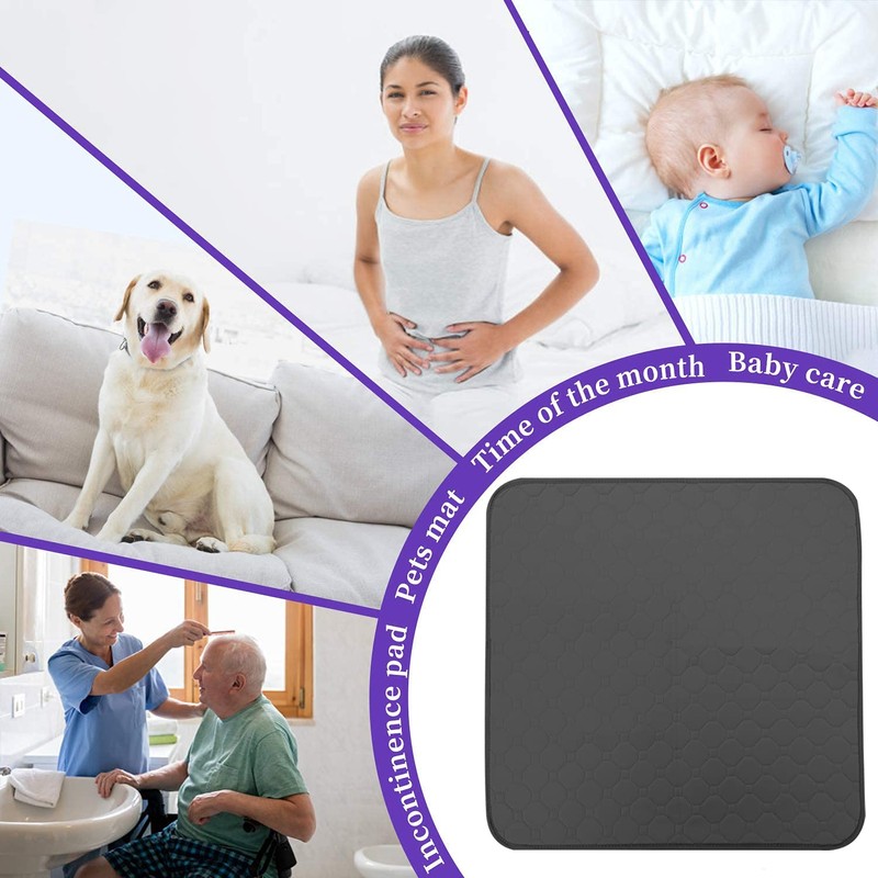 Non-Slip Absorbent Washable Incontinence Pad underpad Seat 4-Layer Design Chair Absorbent Pads Protection - for Seniors, Adult, Children, or Pet Underpad Protection - Set of 2 (Black, 21" L x 22" W)