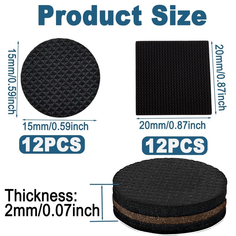 Non Slip Furniture Pads 24Pcs, Self-Stick EVA Round Square Protectors, Chair Leg Protectors for Hardwood Floors, Rug Tape Hardwood Floor No Damage, Protecting from Nicks, Dents and Anti Scratch.