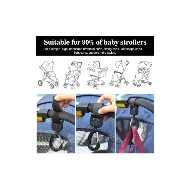 - 360° rotating comfort: Thanks to the 360 degree rotation design, you can easily adjust the hanging direction of your bags with our pram clips. The adorable bear pattern adds a touch of charm while making it easier to access the contents of your bag.