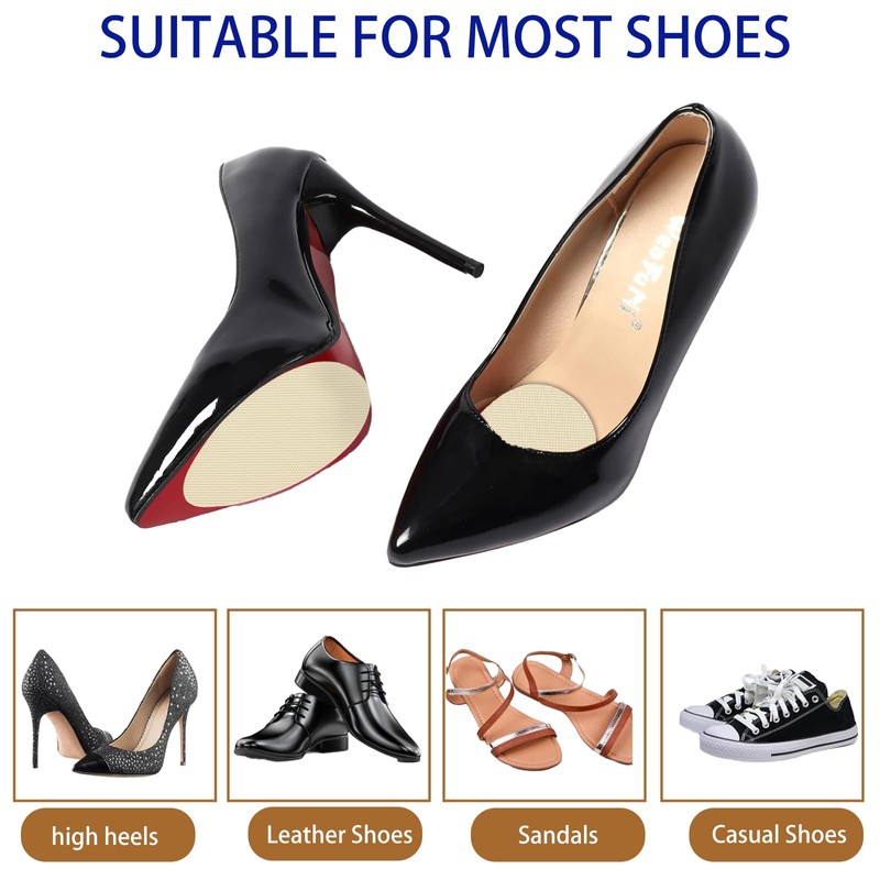 - WIDELY USED: Our high heels anti-slip shoe grips are suitable for use on leather shoes, work shoes, sandals, high heels, canvas shoes, casual shoes, and men's and women's shoes of any size. In sufficient quantity, you will receive 8 pcs of non-slip shoe inserts with a thickness of 0.04 inches, which is enough to cover multiple shoes for daily use or as a spare to ensure that you can use them for a long time and don't have to worry about running out.