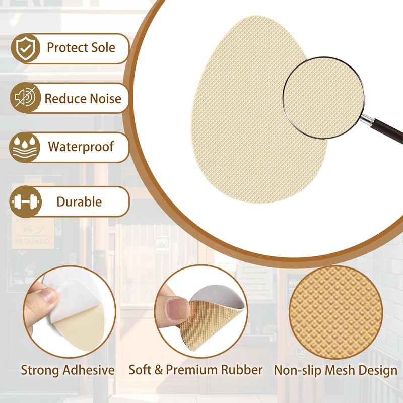 - NOISE REDUCTION: Our shoe sole protector for heels reduce the noise between the soles of your shoes and the ground, absorbing the impact generated by walking, with quiet, non-slip properties, making walking quieter and more civilized where you need to be quiet, such as office buildings or libraries.