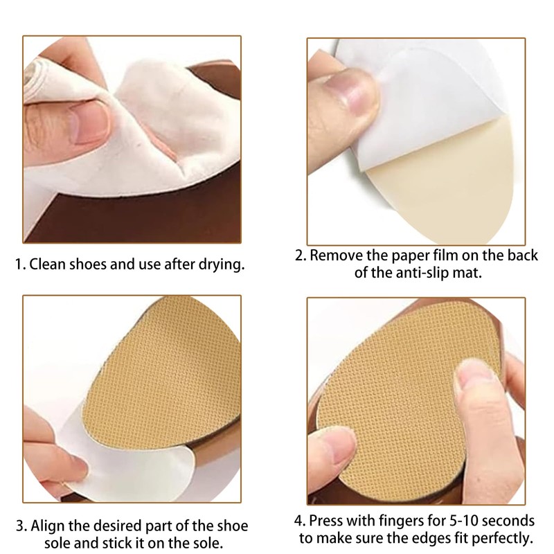 - ANTI-SLIP DESIGN: Our anti-slip shoe soles stickers are made of strong self-adhesive and durable materials, shoe stickers for heels shoes with anti-slip mesh design on the surface can enhance the friction on the ground, unique anti-slip technology enhances grip and stability, so that you can step safely and securely. Anti slip shoe grips can prevent you from slipping and falling at any time when you are dancing, walking, partying, etc., effectively avoiding embarrassing situations.