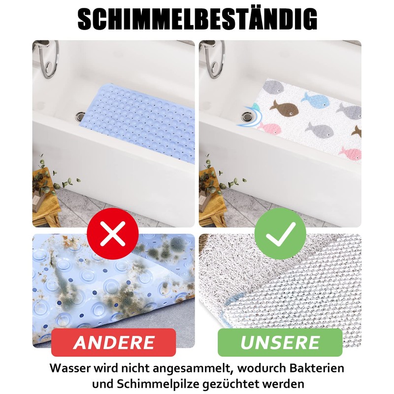 - Non-slip surface - no suction cups, ordinary plastic mats tear the surface of the bath, chip off the paint. Our high quality PVC bath mat uses an anti-slip layer that stays firm while being gentle on the tub surfaces.