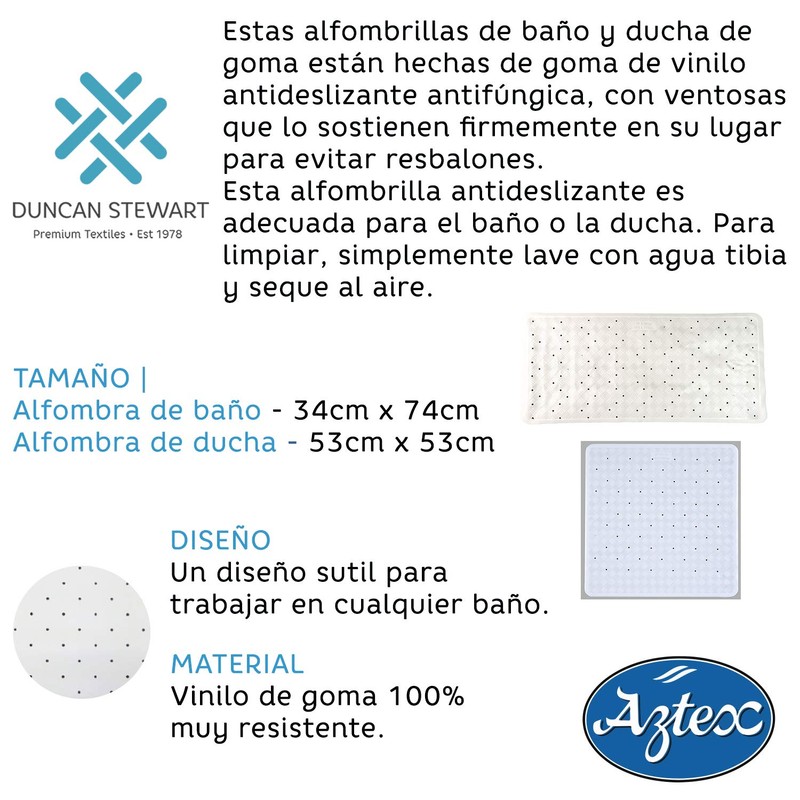 - ✅ PRODUCT - Shower and Bath Mat is made from 100% rubber vinyl. The size of the shower mats are 53cm x 53cm and the bath mats 34cm x 74cm and is suitable for most baths and showers.