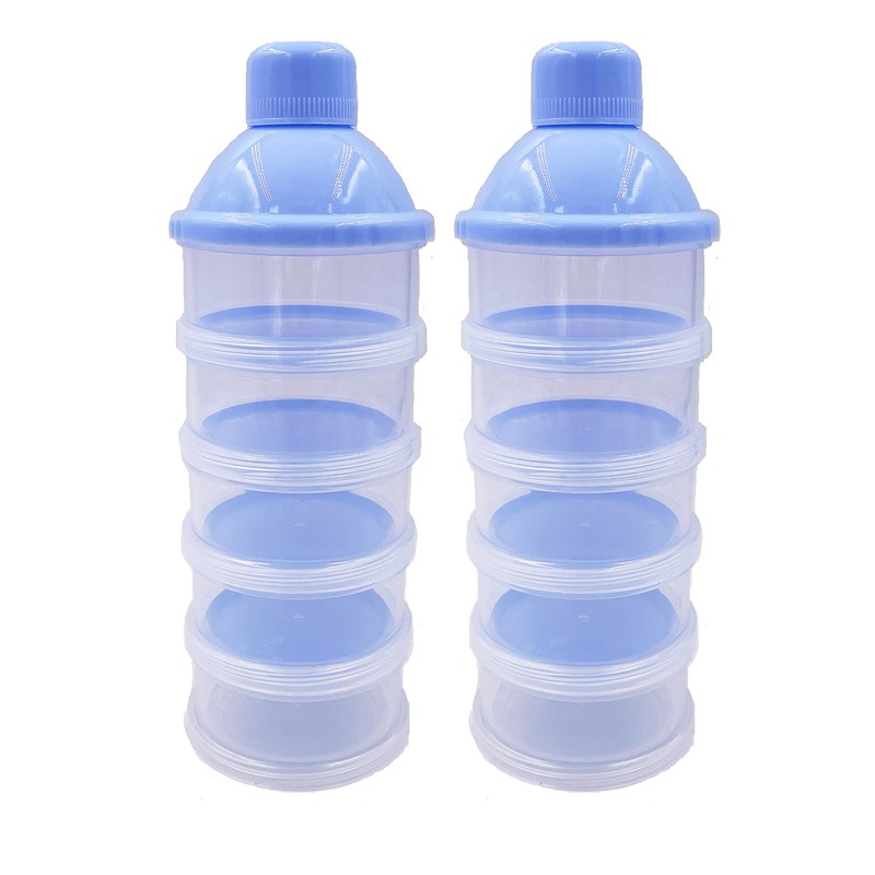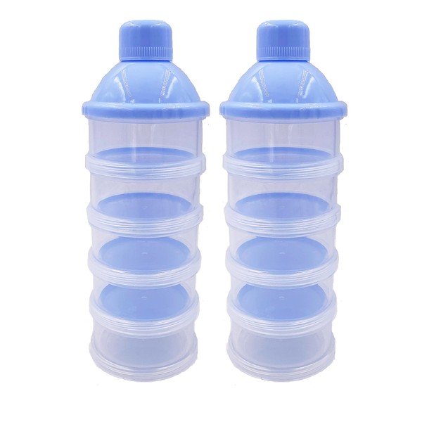 Non-Spill Milk Powder Dispenser/Storage Container, Blue (2pcs)- 5 Compartments