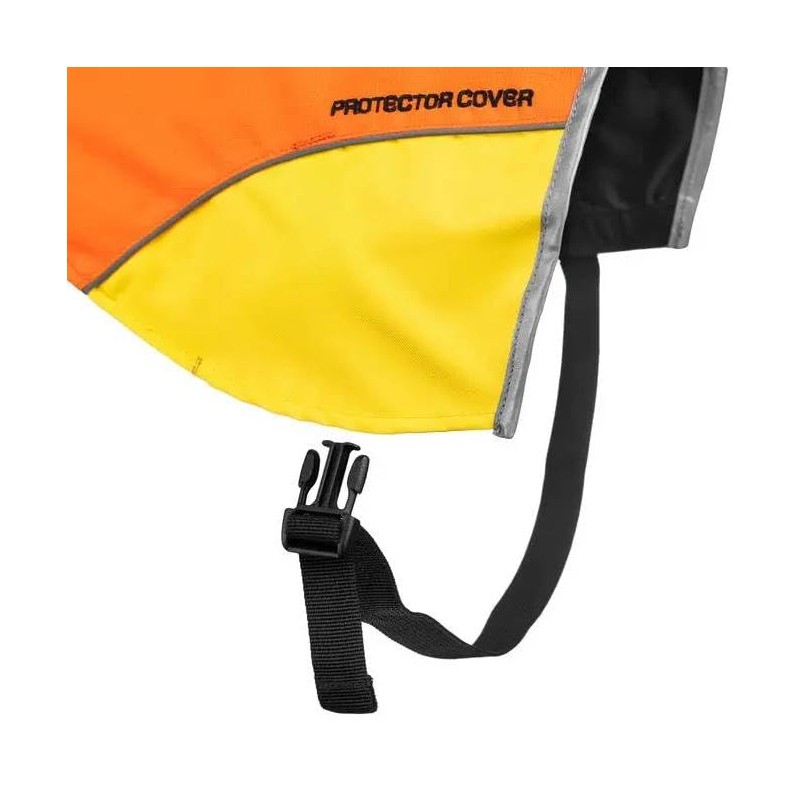 - Protective cover case for a simple yet highly durable coat for your dog. The extremely visible colours and the Relf Streifen make the dog can also be seen in the darkest of areas, increasing safety. The jacket is at the neck with an elastic cord can be adjusted and has a loop to tummy for secure attachment to the dog. Perfect for walks in bad weather and at night or even for hunting.