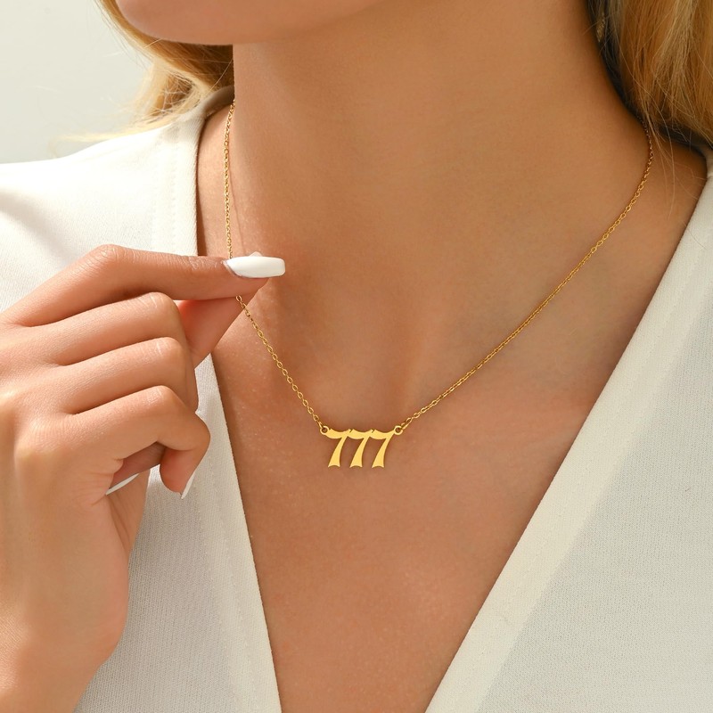 NONAMOIS Gold Angel Number Necklace For Women Dainty 18K Gold Plated Number Pendant Chain Necklace Stainless Steel Simple Gold Numerology Aesthetic Jewelry 777