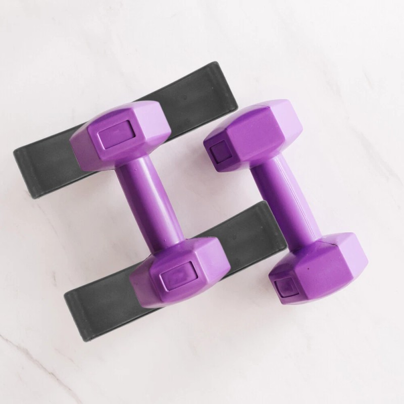 - Place dumbbells to prevent dumbbells from rolling and protect your floor from bruising.