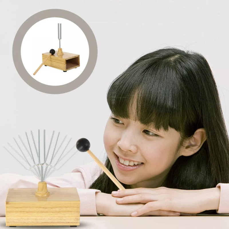 . Sound and vibrations is an important physics concept for students, tuning fork experiments are great visual examples of how vibrations cause sound waves. Then, our tuning fork with hammer kit allows students to listen, experiment, and discuss different kinds of sounds, that students will enjoy learning