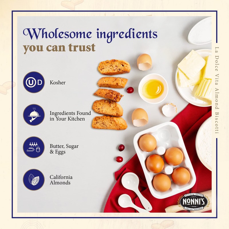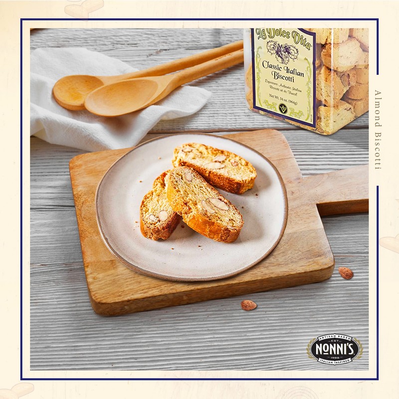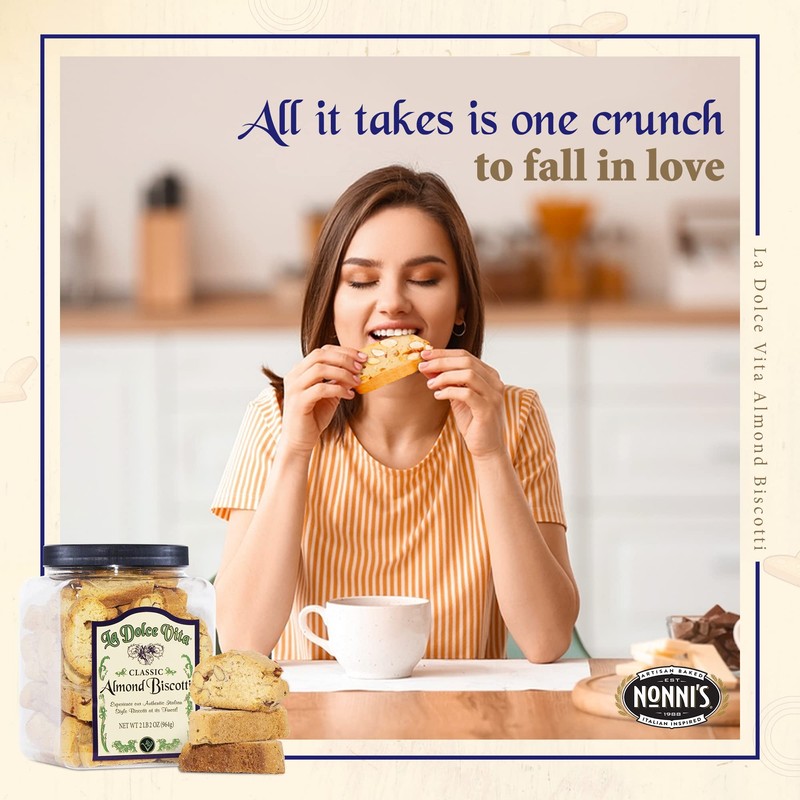 Nonni's La Dolce Vita Almond Biscotti - Biscotti Italian Cookies - Italian Biscotti Cookies - Biscotti Jar - Biscotti Packed w/California Whole Almonds - Perfect w/Coffee - Kosher