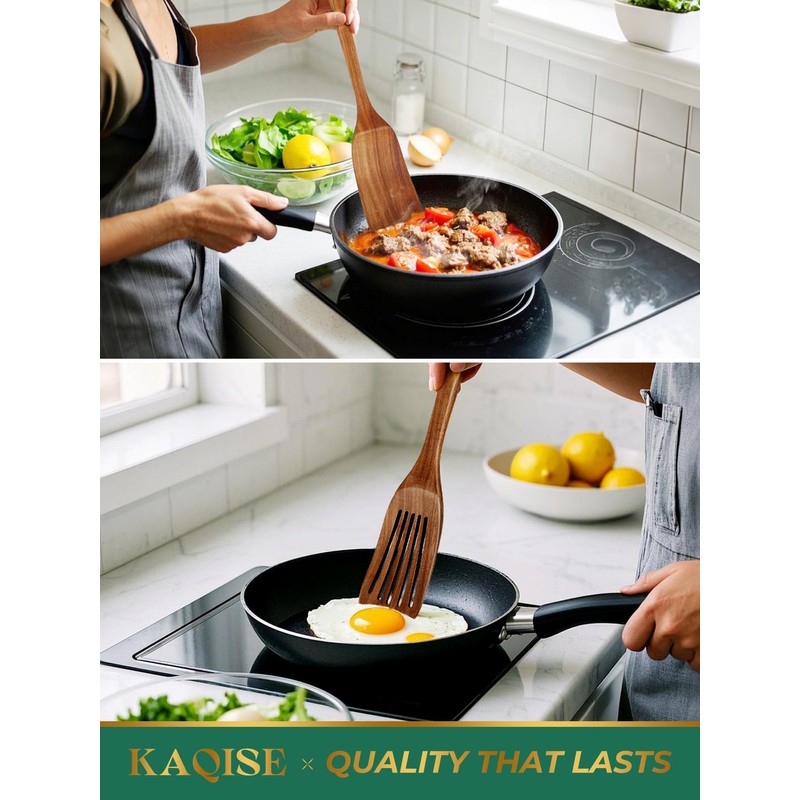 - 【Essential Tools for Everyday Cooking】This Wooden Utensil Set includes a Flat Spatula and a Slotted Spatula, both designed to meet your everyday cooking needs. The Flat Spatula is perfect for flipping, stirring, and serving, while the Slotted Spatula allows you to easily drain liquids when serving soups or sauces. Whether you're grilling, or flipping pancakes, these versatile tools are essential for any home cook.