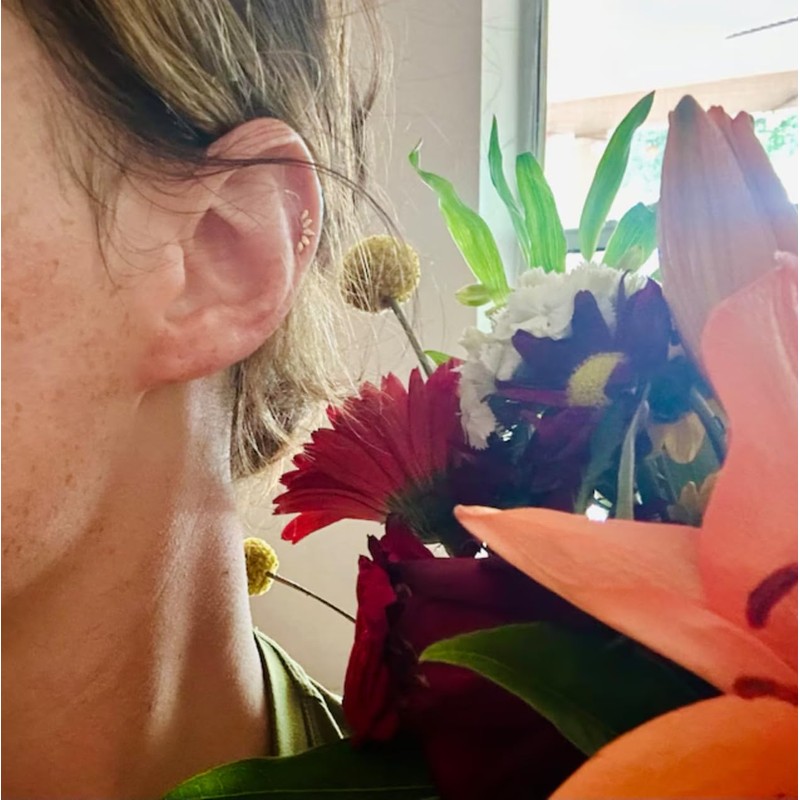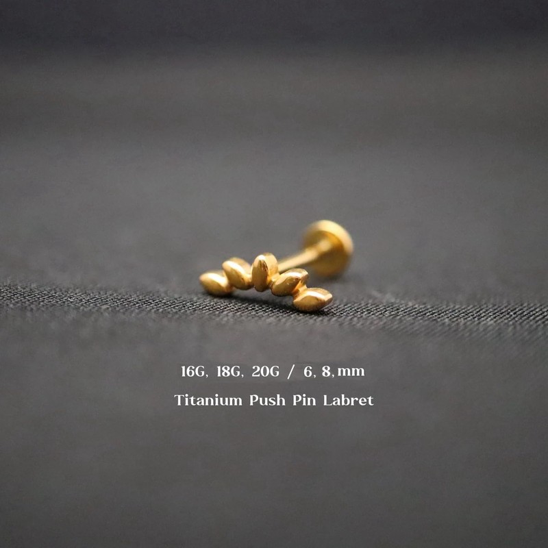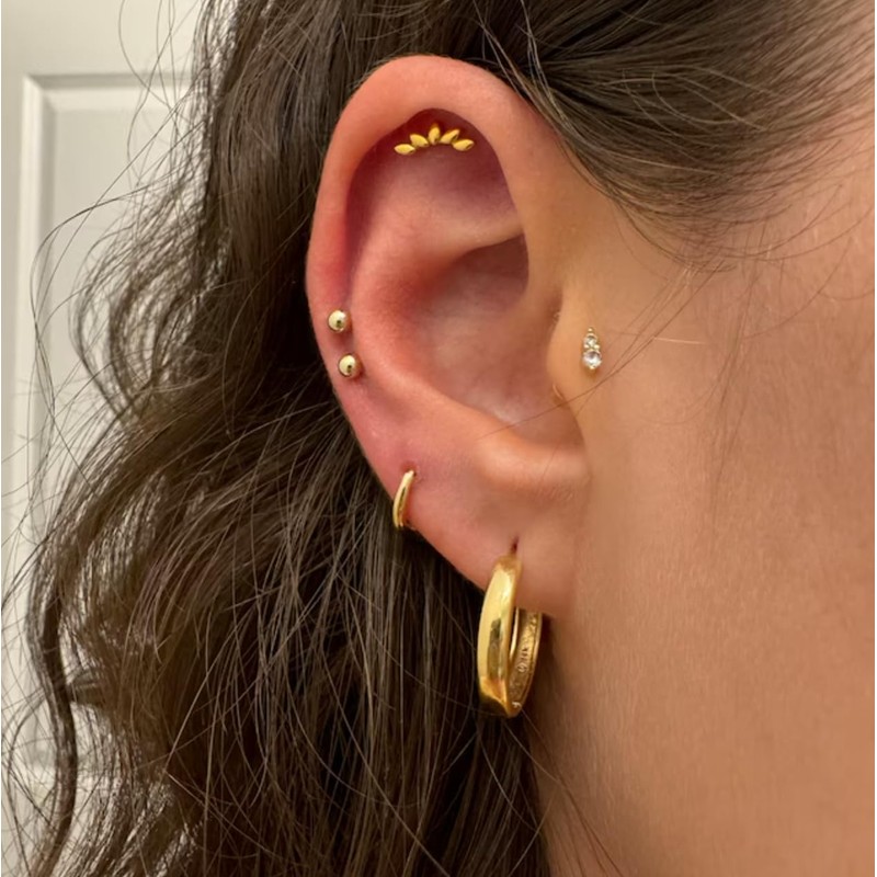 - 2PCS Threadless flat back climber stud earrings. Location: Cartilage, Conch, Daith, Earlobe, Tragus.