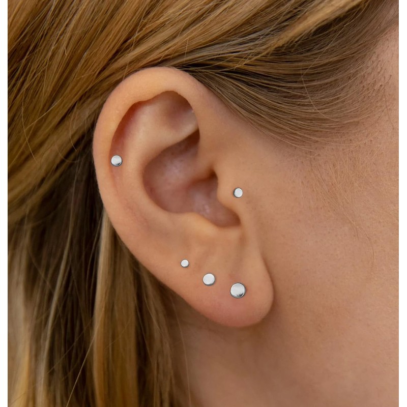 - 5PCS Threadless flat back small disc stud earrings. (2mm, 2.5mm, 3mm, 3.5mm, 4mm)
