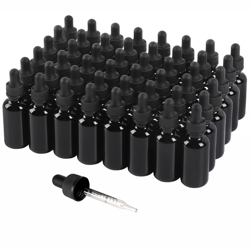 NOOEEISS 48 Pack,1oz Glass Dropper Bottle,Blakc Tincture Bottles with Dropper,Pretty Finish for All Kinds of Liquids,Oil Bottles for Hair- Stronger Suction ideal for Leakproof Travel