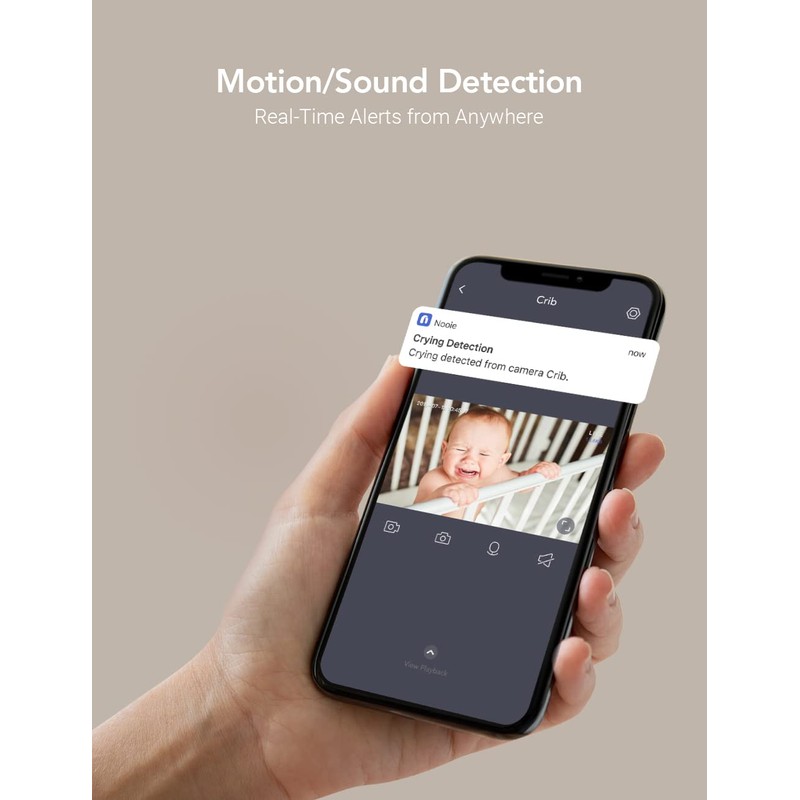 nooie 2K Baby Monitor, Baby Camera Monitor with Phone App, WiFi Indoor Camera for Home Security, AI Motion Tracking, Two-Way Audio, Compatible with Alexa, SD or Cloud Storage