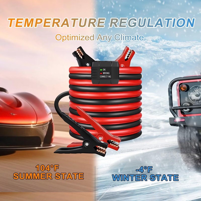 - HEAVY DUTY CCA JUMPER CABLES : Our jumper cables are made of high-density copper-clad aluminum wire core, offering ultra-high conductivity. The battery booster cables are coated with thick double-layer rubber, making them safer and more wear-resistant during use