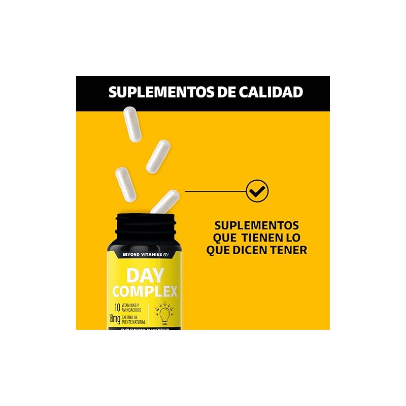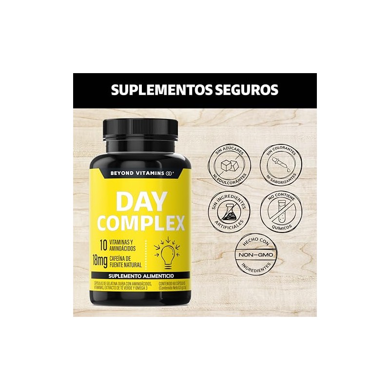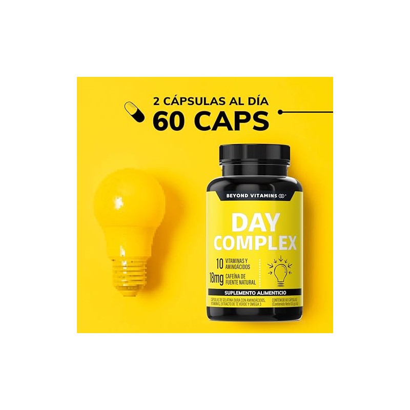 🌟 ⭐ Nootropico Day Complex con Vitaminas, Minerales y Aminoácidos- Contiene Omega 3, L -Triptófano, Colina, Acetil L-Carnitina, L-Teanina- Suplemento Vitamínico - Suplemento Alimenticio en Cápsulas - Sin Azúcar-Ingredientes NON GMO-60 cápsulas ⭐ 🌟