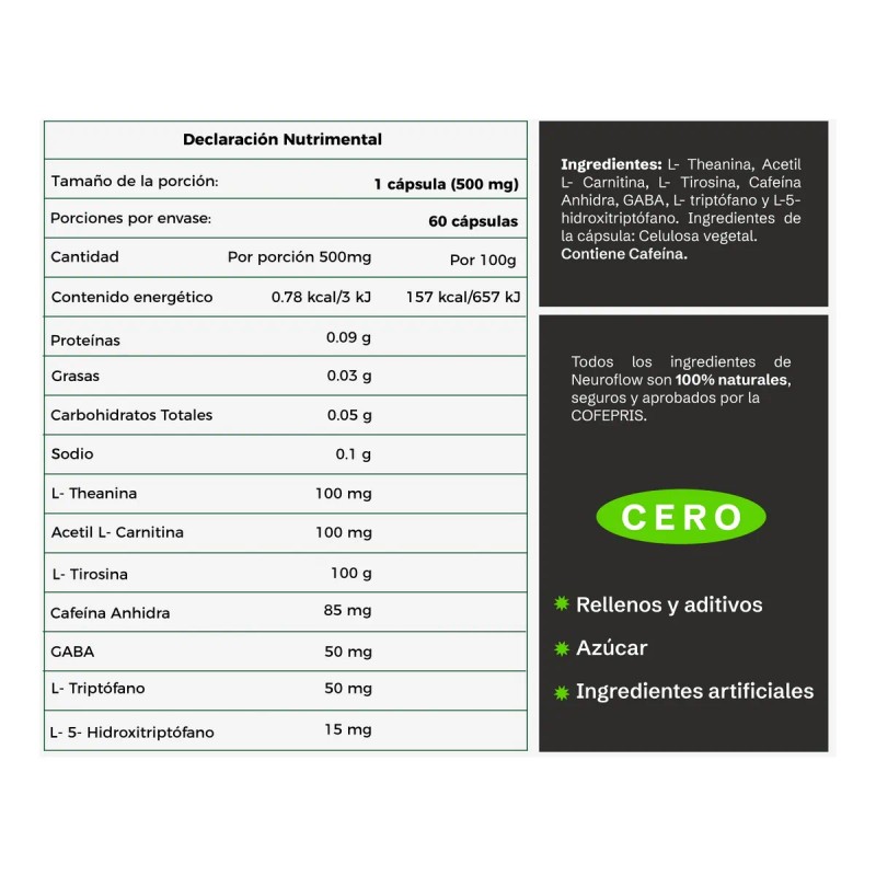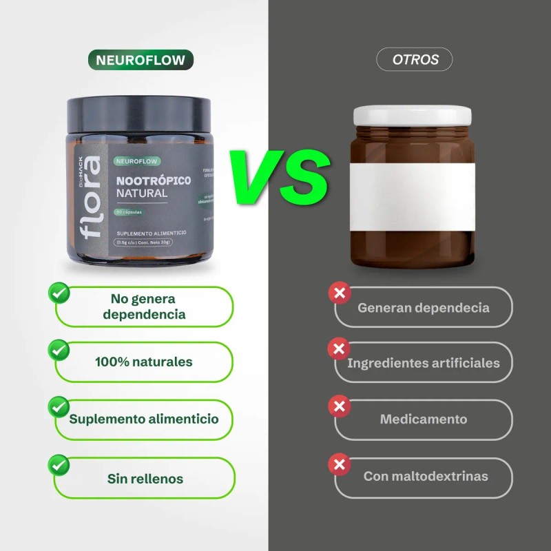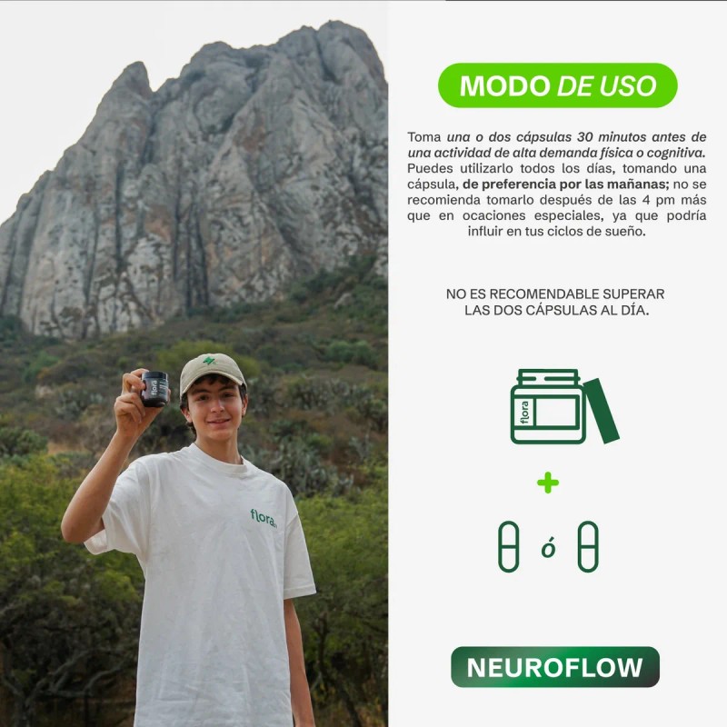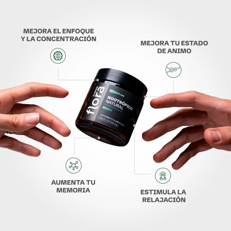 Nootrópico Natural | Flora Neuroflow | 60 Cápsulas Sabor Sin sabor