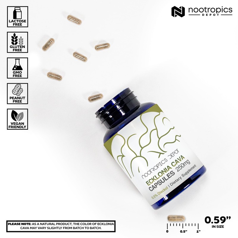 Nootropics Depot Ecklonia cava Capsules | 250mg | 0.5% Dieckol | Brown Seaweed | 120 Count