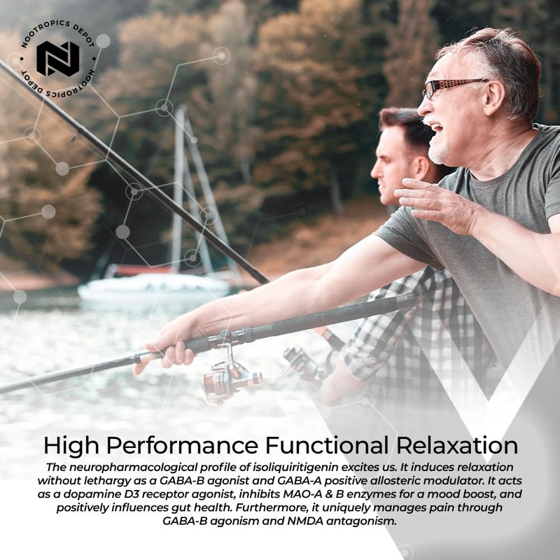 - Relaxation without Drowsiness: The GABA-A and GABA-B modulating properties of Isoliquiritigenin help you relax mentally while maintaining high levels of focus and drive throughout the day. It's the perfect solution to keep your mind at ease while still staying productive.