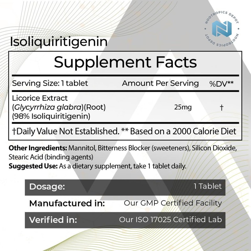 Nootropics Depot Isoliquiritigenin Controlled Dissolve Tablets | 60 Count | 25mg | Licorice Extract | Glycyrrhiza glabra | Mood, Relaxation, and Energy Support
