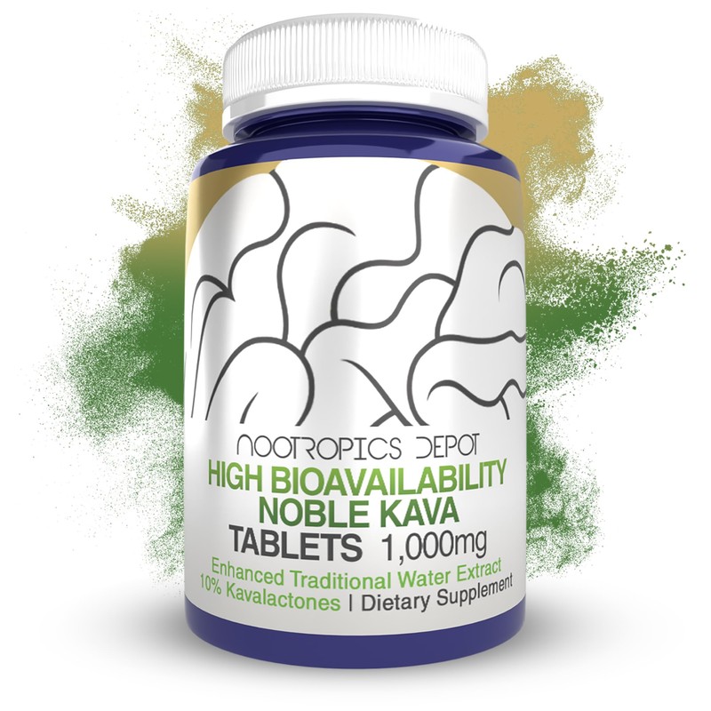 Nootropics Depot High Bioavailability Noble Kava Tablets | 1,000mg | 30 Count | Minimum 10% Kavalactones | Enhanced Traditional Water Extract