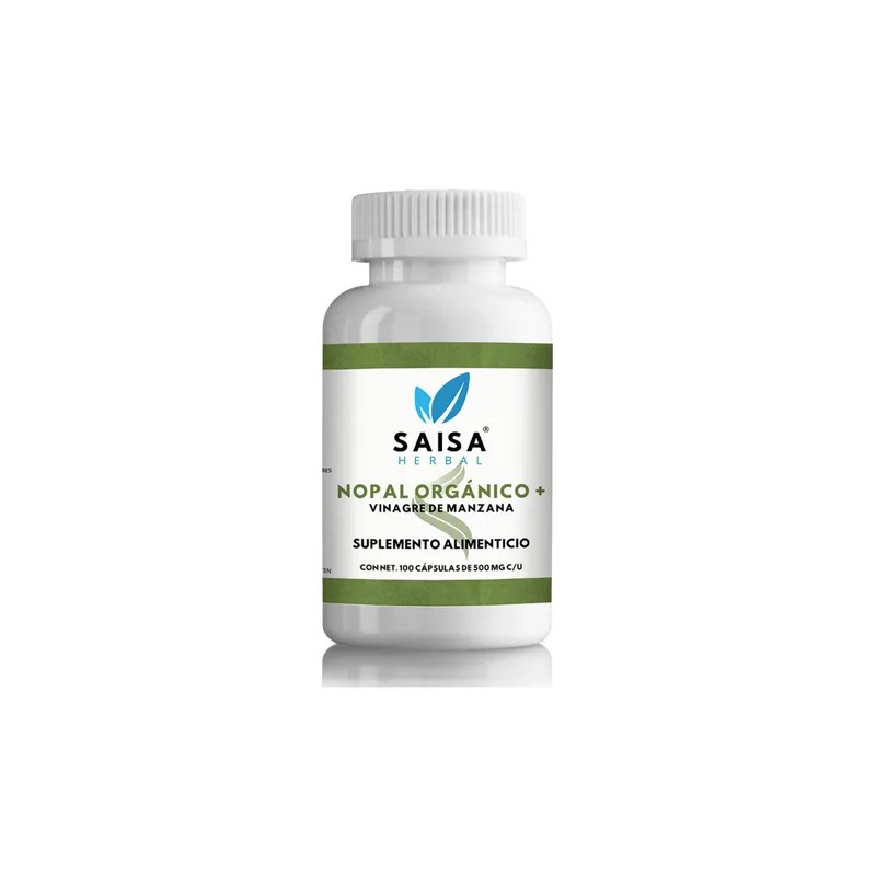 Nopal Orgánico + Vinagre De Manzana | 100 Cápsulas 500 Mg | Saisa Herbal | Control De Peso y Colesterol | Digestión Saludable | 100% Natural