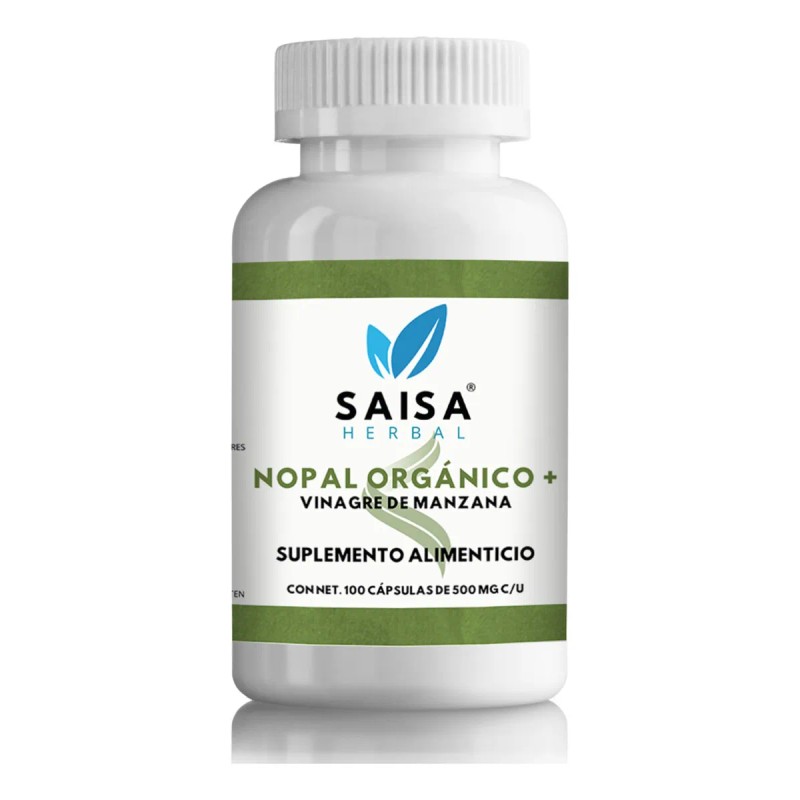 Nopal Orgánico + Vinagre De Manzana | 100 Cápsulas 500 Mg | Saisa Herbal | Control De Peso y Colesterol | Digestión Saludable | 100% Natural