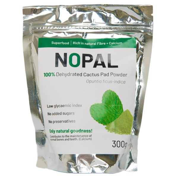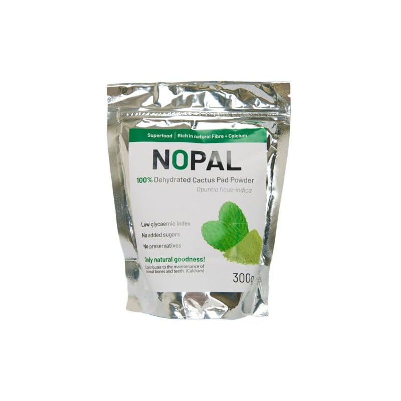 This 300g pouch of Nopal Powder is made from 100% dehydrated Nopal cactus pads – nothing added, nothing taken away. No preservatives, no sugar, no fillers. Just clean, natural goodness straight from the source. Known for its high fibre content, Nopal powder is often used as a natural support for digestion and overall gut health. It’s also rich in vitamins and minerals, making it a great addition to your daily routine. Add a spoonful (10g) to smoothies, soups, dips, or even baked goods like bread and cookies. It mixes well into flour and blends easily with liquids – just be sure to always dilute it before use. You can even get creative with it in desserts and ice cream for a natural twist. Perfect for those following a plant-based or clean diet, this cactus powder offers a simple way to support your body naturally. How to use: Add 1 tablespoon (10g) to liquids or recipes. Do not consume dry powder on its own.