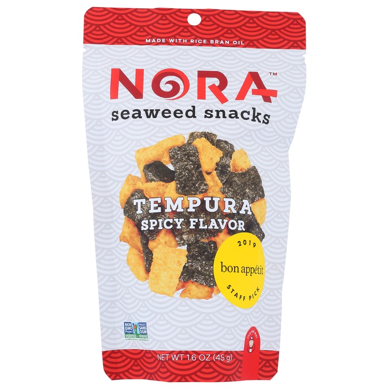 - Nora Snacks Tempura Spicy Flavor Crispy Seaweed Snack, Gluten Free, Non GMO, 1.6 Ounce (Pack of 12)