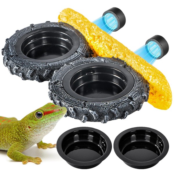 NoraPet Magnetic Reptile Feeder Ledge, Crested Gecko Feeding Ledge with PVC Food Bowls, Tire-Shaped Reptile Food Dish for Crested Gecko Leopard Gecko Lizard Frog Bearded Dragon