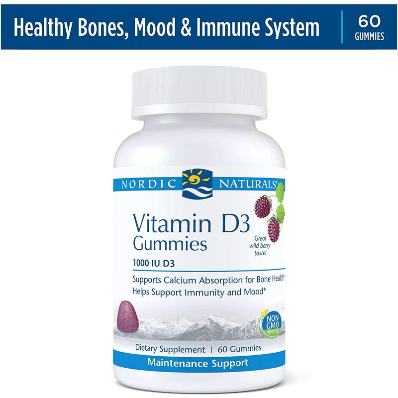 Nordic Naturals Pro Vitamin D3 Gummies, Wild Berry - 1000 IU Vitamin D3-60 Gummies - Great Taste - Healthy Bones, Mood & Immune System Function - Non-GMO - 60 Servings