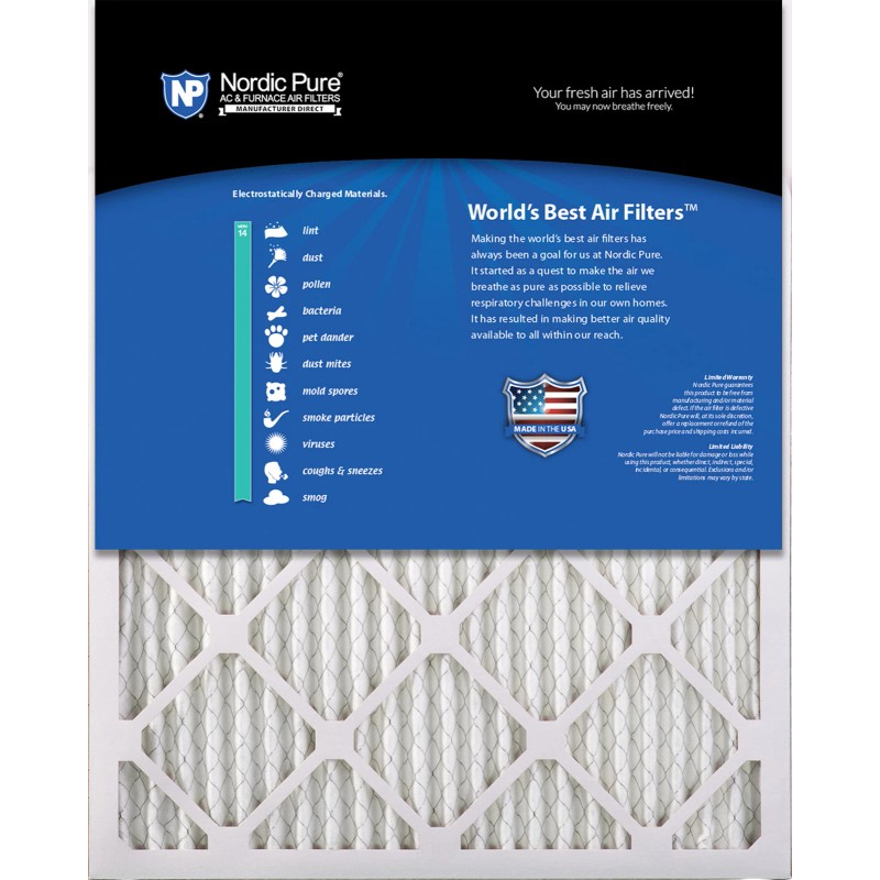 Nordic Pure MERV 14 Pleated AC Furnace Air Filters provide exceptional filtration for both home and commercial environments. Each time air passes through a Nordic Pure pleated furnace air filter, lint, dust, pollen, bacteria, pet dander, dust mites, mold spores, smoke particles, virus carriers, coughs and sneezes, smog, allergens and other contaminants are removed.