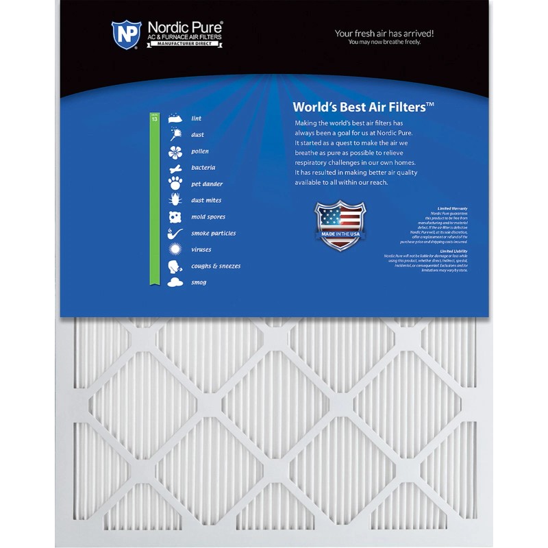 Nordic Pure furnace air filters are made with a heavy duty 2-part, moisture-resistant beverage board frame and self-supporting synthetic polyester fiber media that attracts unwanted particles.