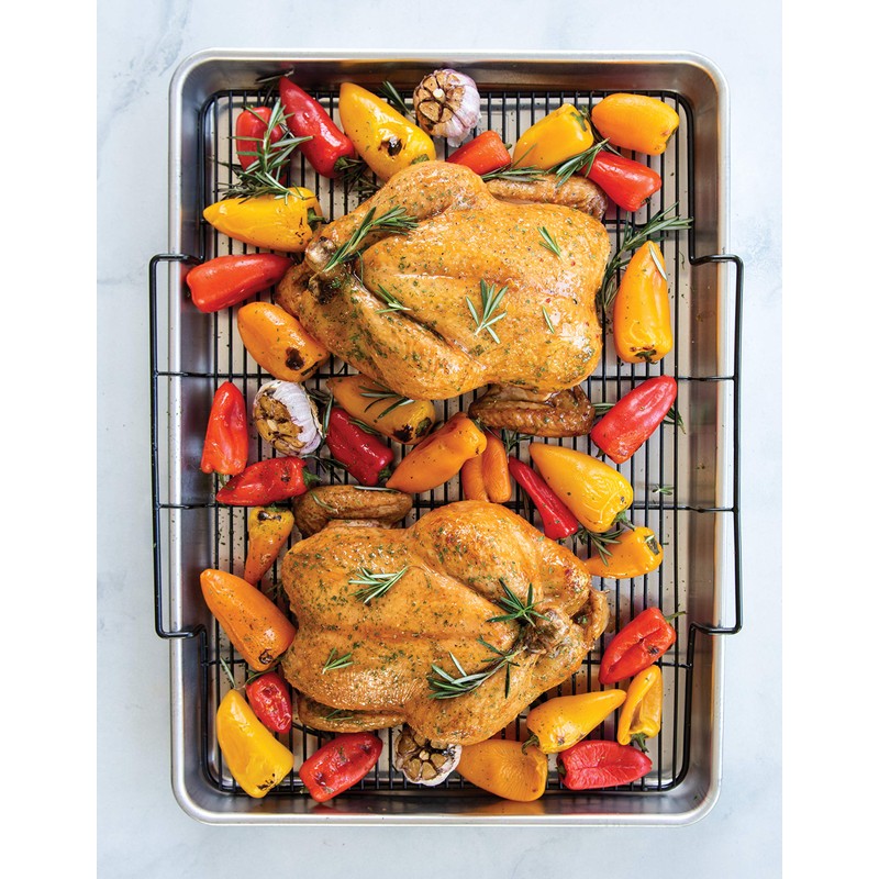 Air crisp in your oven! Roast meats, bacon, fries, tots, homemade jerky, dried fruit and more with our Extra Large Oven Crisp Baking Tray- a larger version of our popular Oven Bacon Pan!