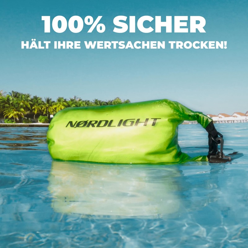 - Summary: 100% waterproof duffel bag, floats when it contains enough air, robust and super light, available in various colours and sizes, 2 L with clip, 5 L, 10 L, 15 L, 20 L with one strap, 30 L with two straps – with Nørdlight you are on the safe side.